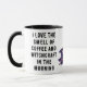 Testemunha Engraçada Testemunha Roxa Verde e Negra Mug - O texto personalizável lê "I Love the Chell of Coffee and Witchcraft in" com uma ilustração em aquarela de uma xícara de café com feitio e chapéu de bruxa roxo e vassoura voadora. Perfeito para aqueles que amam todas as coisas Halloween, bruxa ou só querem uma caneca divertida e engraçada para a temporada de outono.