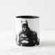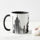 A ilustração do estilo dos quadrinhos de Batman em cima de um gárgula em Gotham City.
