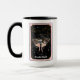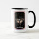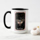 Caneca espantosa com vibração celestial com comichão, apresentando a carta estilo Death Moth Tarot em cores pretas e cor-de-rosa.