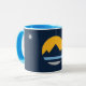 Mug com a nova bandeira da cidade de Reno, Nevada; uma bandeira azul escura com um sol amarelo e montanhas azuis no centro