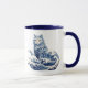 Gato azul e branco elegante no estilo de "A Onda de Kanagawa" pelo artista japonês Hokusai, bloco de madeira ukiyo-e, especialmente para amantes de gatos.