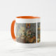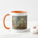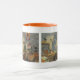 Esta caneca vai definitivamente te colocar no humor para o Halloween! Quatro bruxas em seu castelo, acompanhadas por seus cachorros e gatos, ratos e corvos estão cozinhando um monte de biscoitos para o Truque ou Tratadores. Esta imagem é tirada de uma fotografia da minha cor/caneta de água original e ilustração a tinta "A Receita" e está sob os meus direitos autorais.