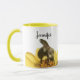 Esta caneca de café faz um presente personalizado excelente para amantes de abelhas. Ele apresenta uma foto de proximidade de uma abelha em uma flor amarela, e seu próprio nome ou mensagem curta em letras negras.