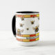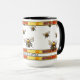Abelhas em voo com listras de mel no topo e no fundo desta caneca de café personalizável. Excelente como presente para apicultores e amantes da natureza, adicione o nome e a bebida nesta abelha fofa chamada caneca.
