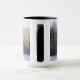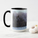 Caneca de café com paisagem de inverno. Árvores aspergidas com neve gelada. O texto pode ser personalizado com sua própria mensagem inspiradora, ou um nome para você mesmo ou uma bela ideia de presente de Natal personalizada e criativa.