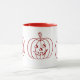 Esta fotografia de Halloween sobre este chá de excelente ou caneca de café é um contorno vermelho de sangue de uma abóbora engraçada com uma expressão esculpida como seu rosto. A imagem de Halloween parece excelente em relação ao fundo branco desta caneca de porcelana de Halloween, tenho certeza que qualquer um que receba esta caneca engraçada de abóbora como o trato de Halloween ficará agradavelmente surpreso.