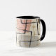 Esta caneca abstrata moderna do tecido do meio século caracteriza uma réplica de um tecido dos anos 50 do vintage. O fundo é ecru com linhas do preto e do ouro. O tecido igualmente caracteriza formas cinzentas e cor-de-rosa da arte moderna. É uma explosão do passado! Este é o design perfeito para qualquer um que ama artigos com uma sensação retro.