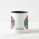 Perfeito para a moça da ginástica, esta caneca apresenta uma renderização abstrato gráfica de um ginasta em uma pose de suporte manual. A imagem do círculo está em preto, verde-branco e rosa, com seu nome ou outro texto personalizado em preto no centro. A imagem é repetida no lado oposto da caneca. *O Clip art usado neste design é protegido por direitos autorais pela Encore Software, Inc., que permite o uso a seus licenciadores. Todos os direitos reservados.