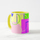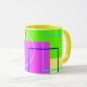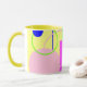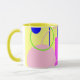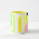 Esta caneca bonito e brilhante apresenta a minha arte gráfica original de linhas e formas em tons azuis, amarelos, cor-de-rosa e verdes. Ele tem um estilo abstrato e lembra a era retrô da arte. O dentro e a alça têm um tom harmonizado de amarelo. Estas são canecas de 11 onças, do tamanho perfeito para o café ou chá da sua casa - ou até chocolate quente! Ele faria um presente de excelente, e você pode colocar pacotes de café, bolsas de chá ou dentro de chocolate quente. Uma outra ideia de presente é colocar uma pequena planta nela para torná-la mais especial