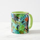 Abstrato em tons vivos de turquesa, lacre, laranja, laranja, vermelho, preto, branco, ouro metálico e tons de verde.