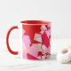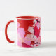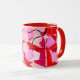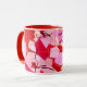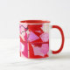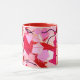 Caneca de café com inspiração no Kandinsky, abstrato moderno do século Médio, geométrica, composição em vermelho-escuro, rosa-orquídea, rosa-pálido e pêssego