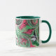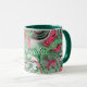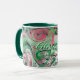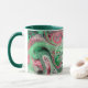 Você pode personalizar, personalizar esta caneca branca marmoreada com um nome, por exemplo, ou até apagar o texto, design bonito e legal em nuances festivos de vermelho, verde, branco, teal, marfim... Pode ser um presente sazonal da época de Natal ou um presente de aniversário de excelente. Trendy, na moda original com formas circulares, espirais, resultante da transformação de um gingham xadrez tartan verifique o padrão em um marmoreado.