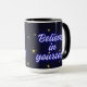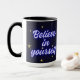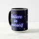 Esta caneca motivacional com um design preto elegante e estrelas amarelas vibrantes com as palavras "Acredite em si mesma" é o lembrete diário perfeito para se manter positivo e confiante. Quer esteja a gostar do café da manhã ou do chá, esta caneca deve inspirá-lo a enfrentar o dia com determinação e autosegurança. Traga uma explosão de positividade para a sua rotina matinal com esta caneca empoderadora.