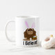 Acredito! Páscoa de coelho vestindo coelhos com um cheio de cesto de ovos coloridos