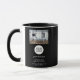 Preto Adicionar Logotipo Personalizado Texto Empresa Foto do Café Calendário 2024 Mug. Insira o logotipo e a foto de sua empresa no modelo e personalize o texto, o nome da empresa, o endereço e as informações de contato. Uma caneca útil com um calendário para 2024. Caneca de café de promocional de negócios.