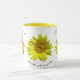 Todo mundo adora sol! O girassol é a coisa mais próxima. Quando começar a sua manhã com esta caneca vai iluminar os dias mais sombrios, incluindo as segundas-feiras chuvosas! Excelente para si mesmo, ou como presente para um amigo especial ou amado, esta caneca certamente trará alegria a todos! "Adicione um pouco de sol ao seu dia!" é da minha fotografia original e está sob meus direitos autorais.