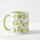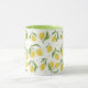 Ilustração desenhada com limão, com limões amarelos, folhas verdes, texturas pintadas e bolinhas.