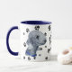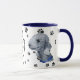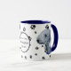 Esta caneca para o dono do Cachorro Terrier Bedlington apresenta um retrato de aquarela de um belo Bedlington Terrier vestindo uma coleira azul. A imagem é impressa duas vezes, e entre elas está um oval com o texto preto que diz "Love my Bedlington Terrier". As imagens ovais e de cães são colocadas sobre um fundo branco aspergido com estampas pretas. Você pode facilmente mudar o texto para outra coisa, ou personalizá-lo, se quiser.