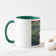 Nosso filho, o título desta caneca. Uma caneca bonita, aparada no verde de caçador. Tem uma imagem de uma criança do adolescente de 11 anos. Esta é umas 11 onças. caneca combinado, branca.