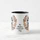 Uma bonito coroa de outono em tons de cinamão marrom, bronzeado e creme rodeia a imagem aquosa de um lindo Cachorro Malamute do Alasca. A imagem é impressa duas vezes na caneca, com seu texto personalizado entre eles.