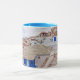 A Grécia tradicional e pitoresca na sua caneca. Uma bela, pitoresca e tradicional vila da ilha Skopelos com a arquitetura pitoresca e as casas clássicas. Para que você possa beber sua bebida e tudo lhe lembre de Grécia.