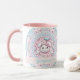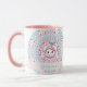 Brigue suas manhãs com esta caneca personalizada Cotton Candy Kawaii Bunny Dot Mandala. Apresentando um coelho branco macio com um arco cor-de-rosa rodeado por doces de algodão, nuvens e guloseimas em forma de estrela em um fundo listrado de rosa claro, esta caneca traz capricho e charme a cada gole. O coelho está envolto em uma intrincada mandala de ponto com bordas escaldadas, motivos florais e tons pastéis de rosa, azul claro, e toques de vermelho profundo, adicionando elegância decorativa à sua bebida favorita. Seja em casa ou no escritório, faz uma adição alegre à sua coleção de canecas. Personalize-o com um nome para um presente atencioso e único.