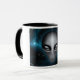 Uma descrição de uma alienígena cinzenta com um fundo do espaço.