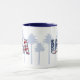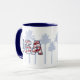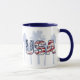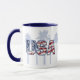 Um impressão de camisa de aloha havaiano antigo combinado com uma bandeira americana para criar este gráfico que é enquadrado por palmeiras. Personalize este design na sua caneca favorita.