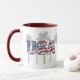 Um impressão de camisa de aloha havaiano antigo combinado com uma bandeira americana para criar este gráfico que é enquadrado por palmeiras. Personalize este design na sua caneca favorita.
