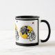 Se no escritório ou em casa, esta caneca de café amigável preto e branco contemporânea da flor com acentos geométricos brilhantes em amarelo e o vermelho avivam o ambiente. Uma caneca de café amigável da flor faz todas as ocasiões especiais. Design original por Anne Bell.