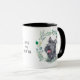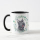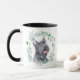 Cada lado desta caneca tem um belo retrato aquoso de um adorável Cachorro Escocês preto Terrier em uma coroa azul verde. Entre as duas imagens está o texto que diz "AMOR minha SCOTTIE" a preto. O texto pode ser facilmente alterado ou mesmo removido, se preferir.