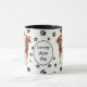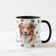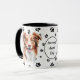 Esta caneca para o dono do Shepherd Dog australiano mostra um retrato de aquarela de um belo Aussie vermelho e branco. A imagem é impressa duas vezes, e entre elas está um oval com texto que diz "Love my Aussie Dog". Tudo é colocado sobre um fundo de padrão de impressão de pata branca e preta. Você pode facilmente mudar o texto para outra coisa, ou personalizá-lo, se quiser.