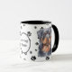 Esta caneca do dono do cachorro rottweiler apresenta o retrato de aquarela de um artista de um rottie. A imagem é impressa duas vezes, e entre elas está um oval com o texto preto que diz "Ame meu Rottie". As imagens ovais e de cães são colocadas sobre um fundo aspergido com estampas pretas. Você pode facilmente mudar o texto para outra coisa, ou personalizá-lo, se quiser.
