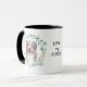 "AMA MEU AUSSIE" declara esta caneca para o amante australiano de Shepherd Dog. Cada lado da caneca tem um belo retrato de aquarela de um Aussie em uma coroa azul verde. Entre as duas imagens está o texto, que pode ser facilmente personalizado, ou mesmo removido, por você.