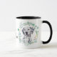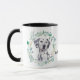 "AMA MEU DALMATIANO" declara esta caneca para o fã do Cão Dalmático. Cada lado da caneca tem um belo retrato aquoso de um Dal em uma coroa azul verde. Entre as duas imagens está o texto, que pode ser facilmente personalizado, ou mesmo removido, por você.