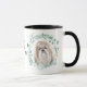 "AMA meu SHIH-TZU" declara esta caneca para o dono de um Cão Shih-Tzu. Cada lado da caneca tem um belo retrato aquoso de Shih-Tzu emoldurado dentro de uma coroa azul verde. Entre as duas imagens está o texto, que pode ser facilmente personalizado, ou mesmo removido, por você.