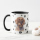 Esta caneca para o dono do Cão de Dachshund Hired apresenta um retrato de aquarela de um artista de um Doxie. A imagem é impressa duas vezes, e entre elas está um oval com o texto preto que diz "Love my Doxie". A imagem oval e do cão é colocada sobre um fundo aspergido com estampas pretas. Você pode facilmente mudar o texto para outra coisa, ou personalizá-lo, se quiser.