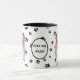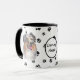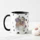Esta caneca para o dono do Shepherd Dog australiano apresenta o retrato de uma aquarela de um artista de um azul-merle Aussie. A imagem é impressa duas vezes, e entre elas está um oval com o texto preto que diz "Love my Aussie". As imagens ovais e de cães são colocadas sobre um fundo aspergido com estampas pretas. Você pode facilmente mudar o texto para outra coisa, ou personalizá-lo, se quiser.
