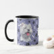 Esta caneca para o dono do Cachorro White Terrier West Highland apresenta um retrato de aquarela de um belo Westie branco. A imagem é impressa duas vezes, e entre elas está um oval com o texto preto que diz "Ame meu Westie". As imagens ovais e de cães são colocadas sobre um fundo azul de cinza coberto por estampas pretas e ossos brancos. Você pode facilmente mudar o texto para outra coisa, ou personalizá-lo, se quiser.