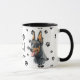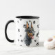 Esta caneca para o dono do Doberman Pinscher Dog apresenta um retrato de aquarela de um bonito Dobie. A imagem é impressa duas vezes, e entre elas está um oval com o texto preto que diz "Love my Doberman". As imagens ovais e de cães são colocadas sobre um fundo aspergido com estampas pretas. Você pode facilmente mudar o texto para outra coisa, ou personalizá-lo, se quiser.