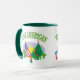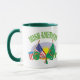Características deste design irlandesas patrióticas da herança a bandeira dos Estados Unidos e uma bandeira verde com uma harpa irlandesa e o subtítulo "americano irlandês" no texto verde.