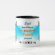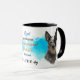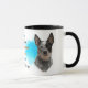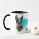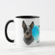 Um retrato de um lindo Cão Bovinos Australiano é a característica em dois lados desta caneca. Cada imagem é colocada sobre um fundo azul brilhante de filtro. Entre as duas imagens está o texto que descreve esse companheiro leal e protetor, com "o Cachorro" em preto no fundo. Todo o texto é facilmente personalizado para qualquer coisa que você queira para que você possa descrever seu próprio amigo leal.
