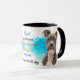 Um retrato de um belo cão Terrier americano de Staffordshire é a característica em dois lados desta caneca. Cada imagem é colocada sobre um fundo azul brilhante de filtro. Entre as duas imagens está o texto que descreve esse companheiro leal e amoroso, com "o cachorro AMSTAFF" em preto no fundo. Todo o texto é facilmente personalizado para qualquer coisa que você queira para que você possa descrever seu próprio amigo leal.