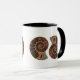 Fotografia de fósseis de amonite em cores de fundo personalizáveis. Imagem em ambos os lados da caneca.
