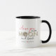 "Eu te amo à lua e volto" personalizado caneca de café, com os nomes dos casais.