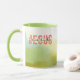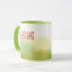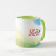 Café, caneca de chá retrata um fundo de aquarela abstrato moderno com tons de azul e verde. Apresenta uma poderosa citação cristã inspiradora, "Amor Como Jesus."