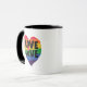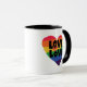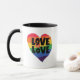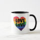 Esta trabalho de arte apresenta a frase "Amor é Amor" desenhada dentro de um coraçao arco-íris colorido.