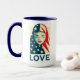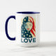 Esta design mostra a figura de uma mulher muçulmana vestindo um hijab de bandeira americana.