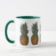 Fotografia de abacaxi fresco repetida em torno da caneca. Cor de dentro personalizável. Excelente por trazer os trópicos para a sua mesa ou mesa.