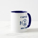 Marinho Azul Anchor Cavalo do Mar Capitão Adicionar Nome ou Nome do Barco Mug de Café - Azul e Branco